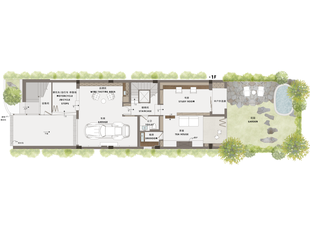 地下空间往往给人昏暗、压抑的感觉,通过开放式设计,打破了这种固有印象,将负一层打造为一个开放且松弛的空间,让人愿意长时间停留。