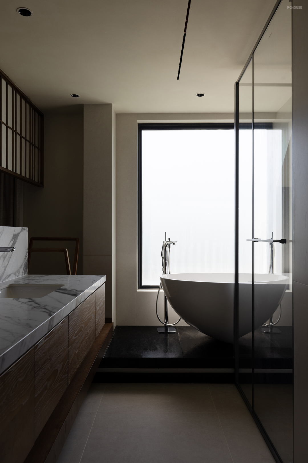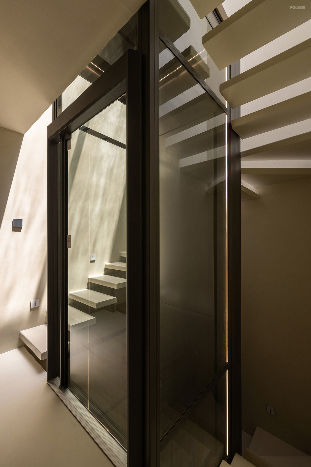通过玻璃电梯和悬浮楼梯,将空间从下至上贯通,像一条光与影交织的纽带,光影的流动带来了微妙的变化,让空间生动起来。