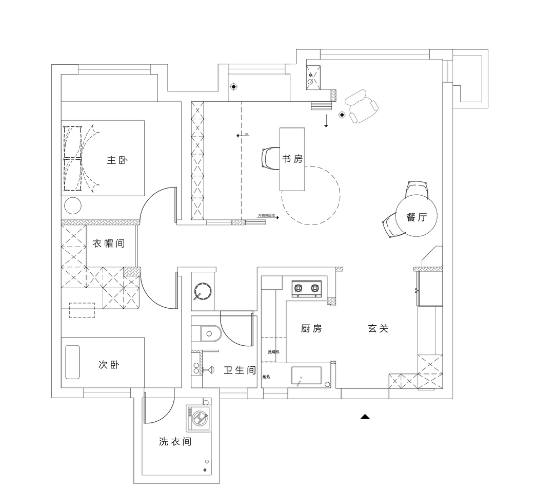 隐藏式收纳系统将琐碎消弭于无形,只留下舒展的平面与流动的线条。