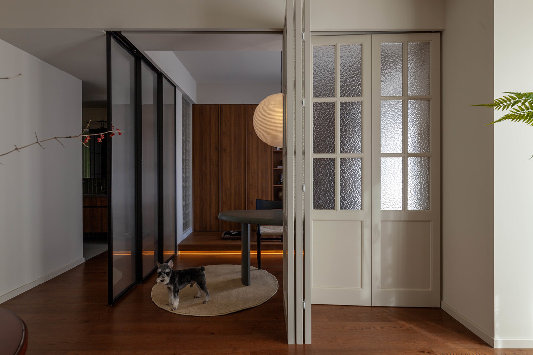 通过轻巧的联动门系统,赋予空间可开可合的弹性。