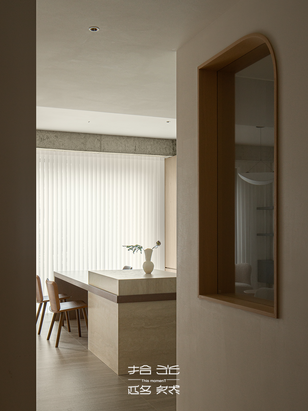 玄关与餐厅,本是两个独立的空间,却被一道门洞轻轻串起。