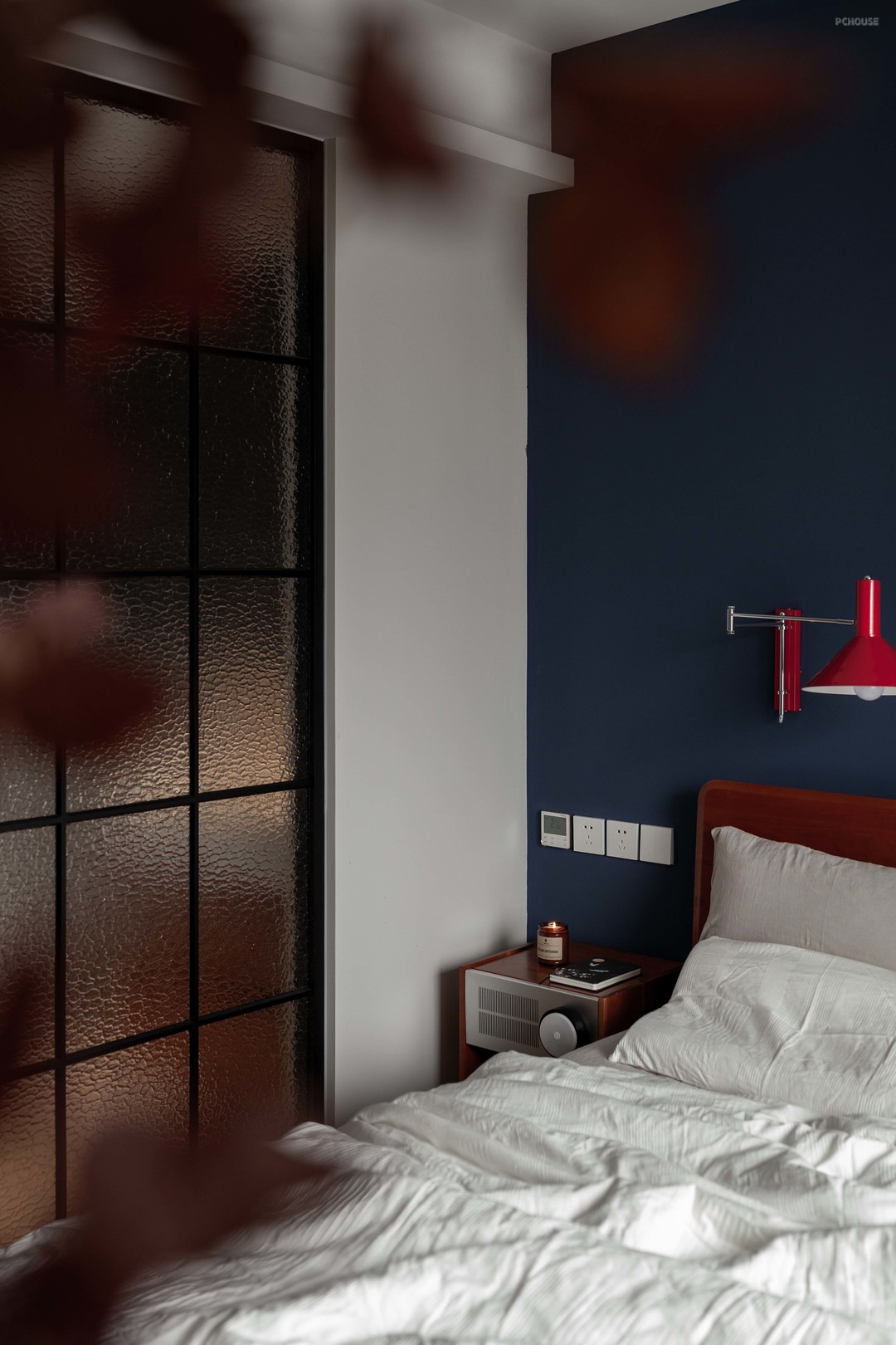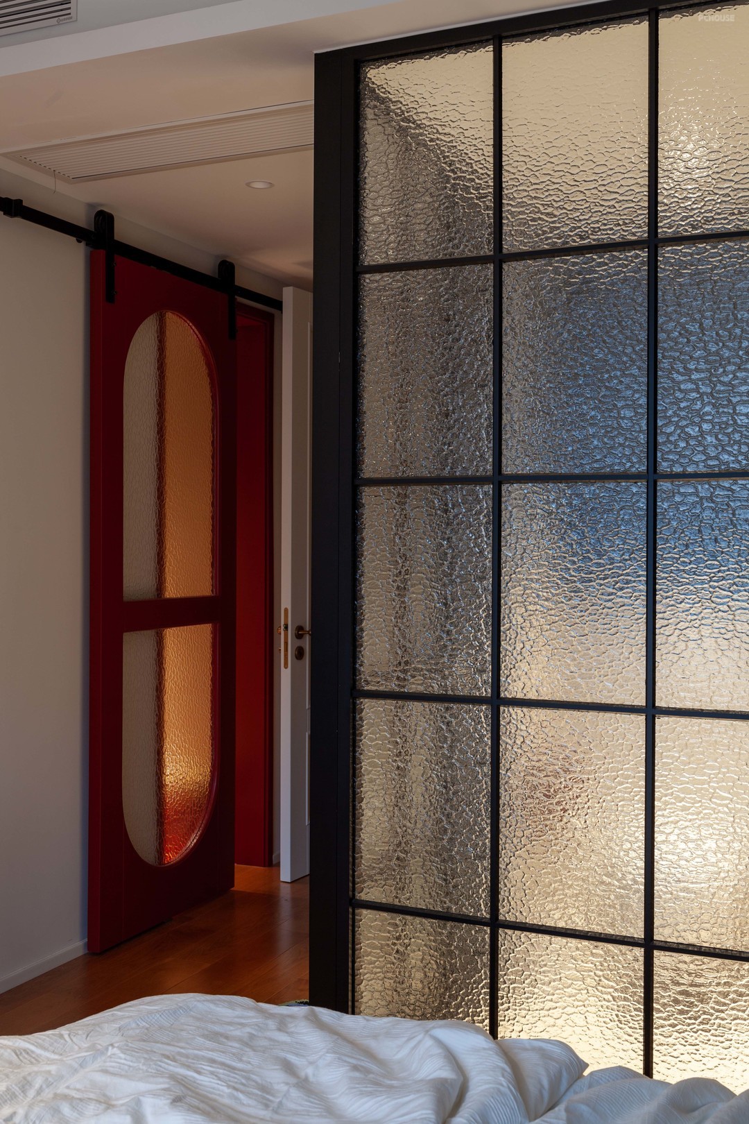 6、将主卧洗手间的一面墙拆除,老铁艺术玻璃隔断既增加卫生间采光,也让主卧更通透明亮。