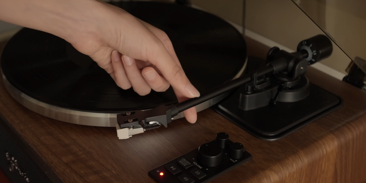 客厅空间以浅木色与暖白色为主调,营造出温润柔和的氛围。开放式布局让书房、餐厨、中岛与客厅区域自然衔接,互动感十足。墙面的金属置物架,错落有致地陈列着书籍与摆件,兼具收纳与装饰性。