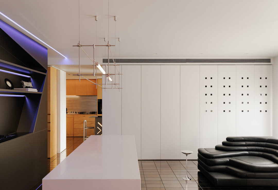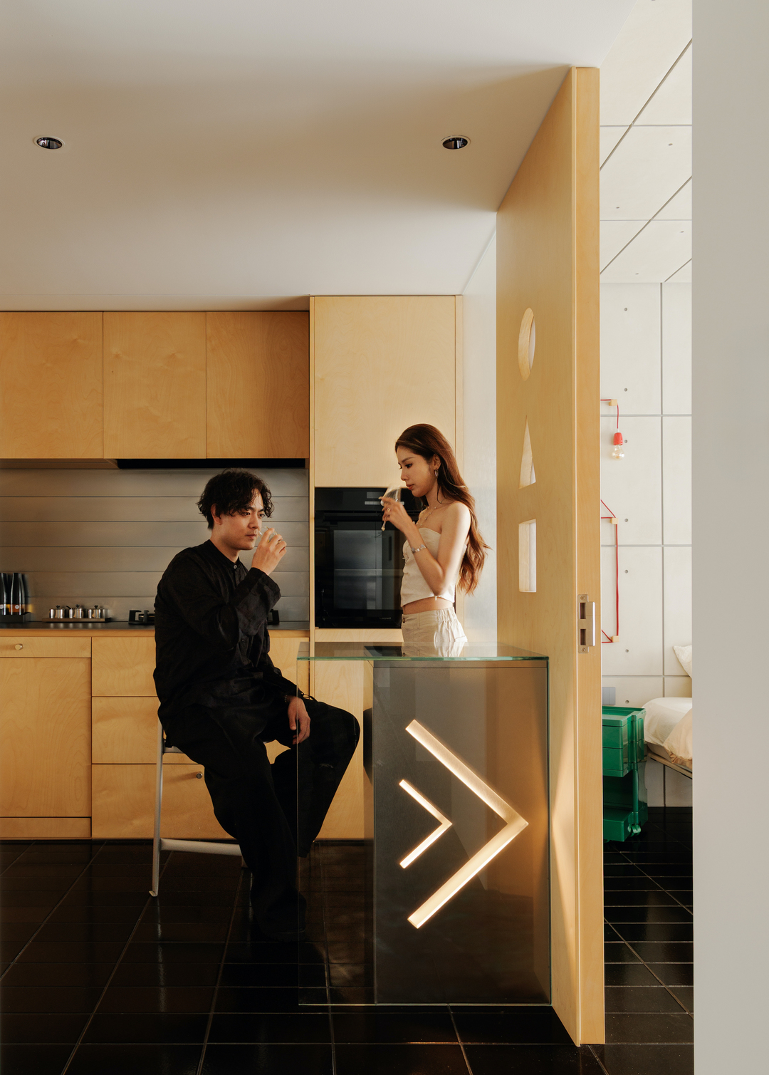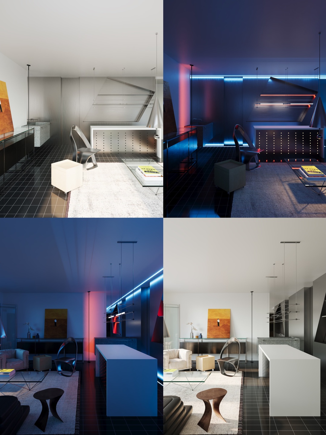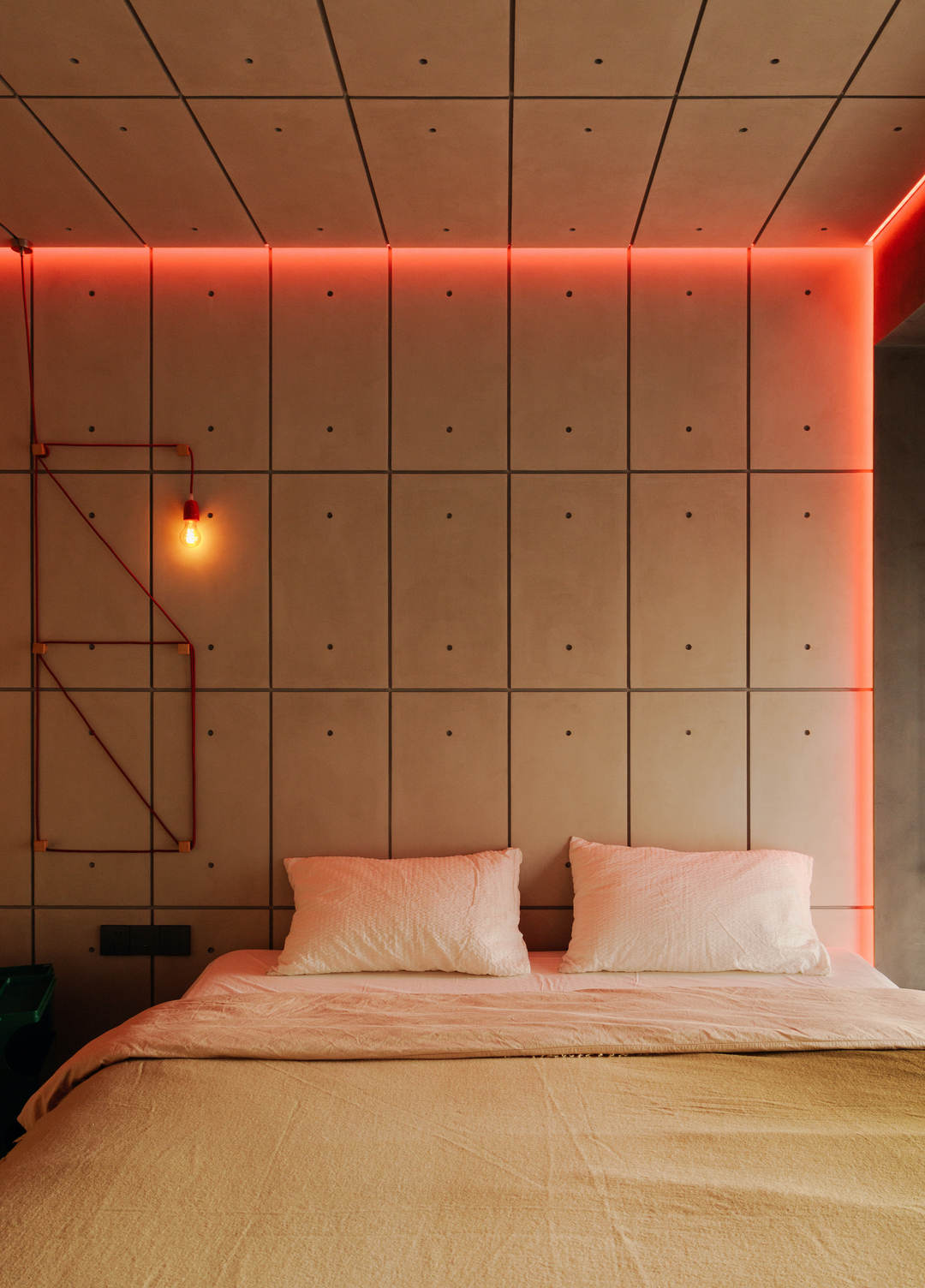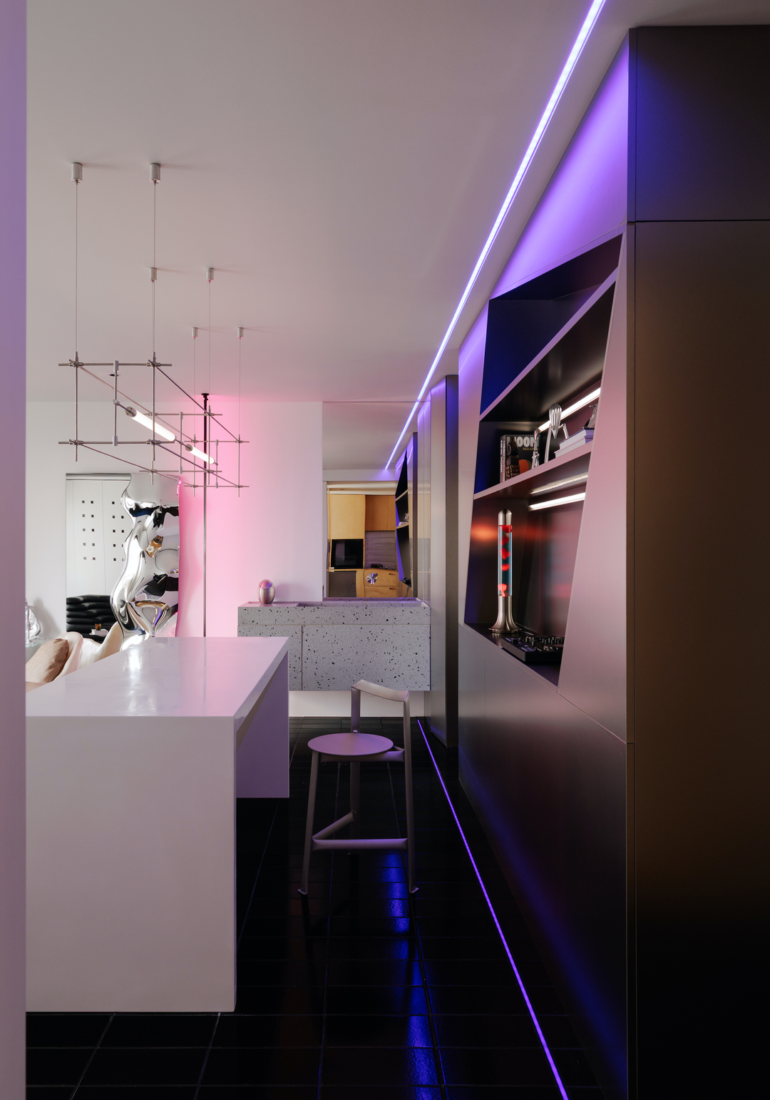 因此,我们通过灯光设计为起居室设计了白天和夜晚两种不同模式,来切换朴实纯真的生活以及电影里未来的赛博朋克感。