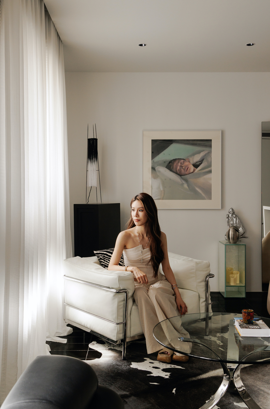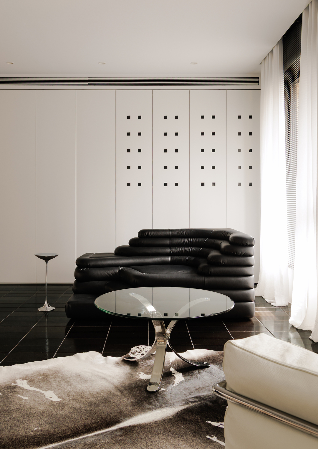沙发特意没有选择统一的三人位,而是选了三个单人沙发LC3、Desede梯田沙发、Kar靠椅围合在一起,赋予空间更多变化的可能。