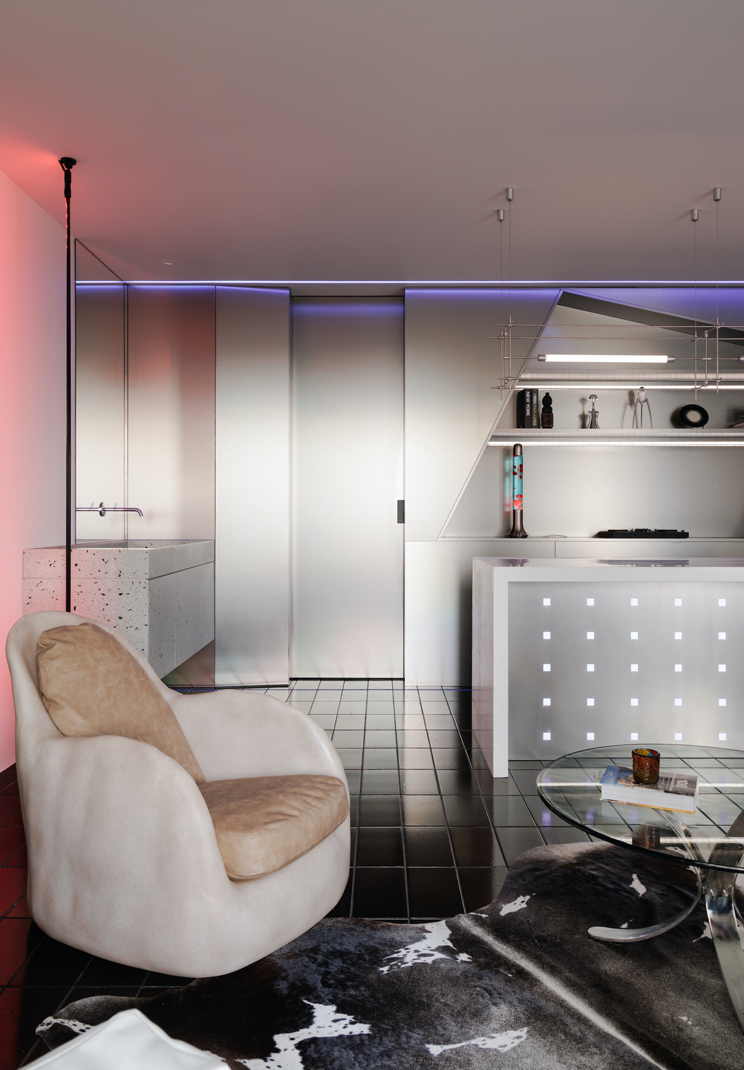 这个家俨然已进化成主人生活方式的多面体——它可以用镜面收纳焦虑,用霓虹豢养情绪,用混凝土包裹疲惫。