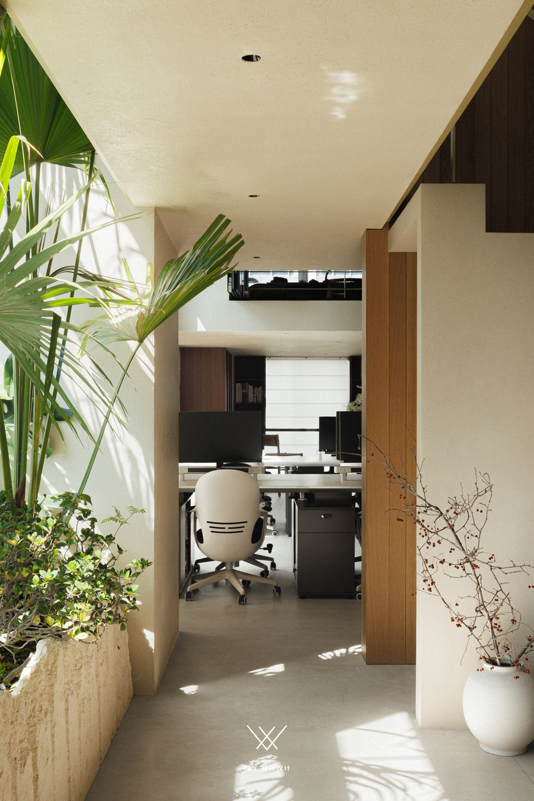 这几年受疫情与金融波动影响,社会下的人们背负着更多的压力与困惑,内心踌躇不安,宋老师以自然为引,结合多种自然元素触及生活的原始与本真,自由灵性的空间让身处其中的人寻得舒缓与平静,对于我们来说虽是办公空间却不乏那一份属于家的归属感与安心;一个兼具功能性的办公空间与精神性的艺术空间吸收着万物灵气葳蕤生香。