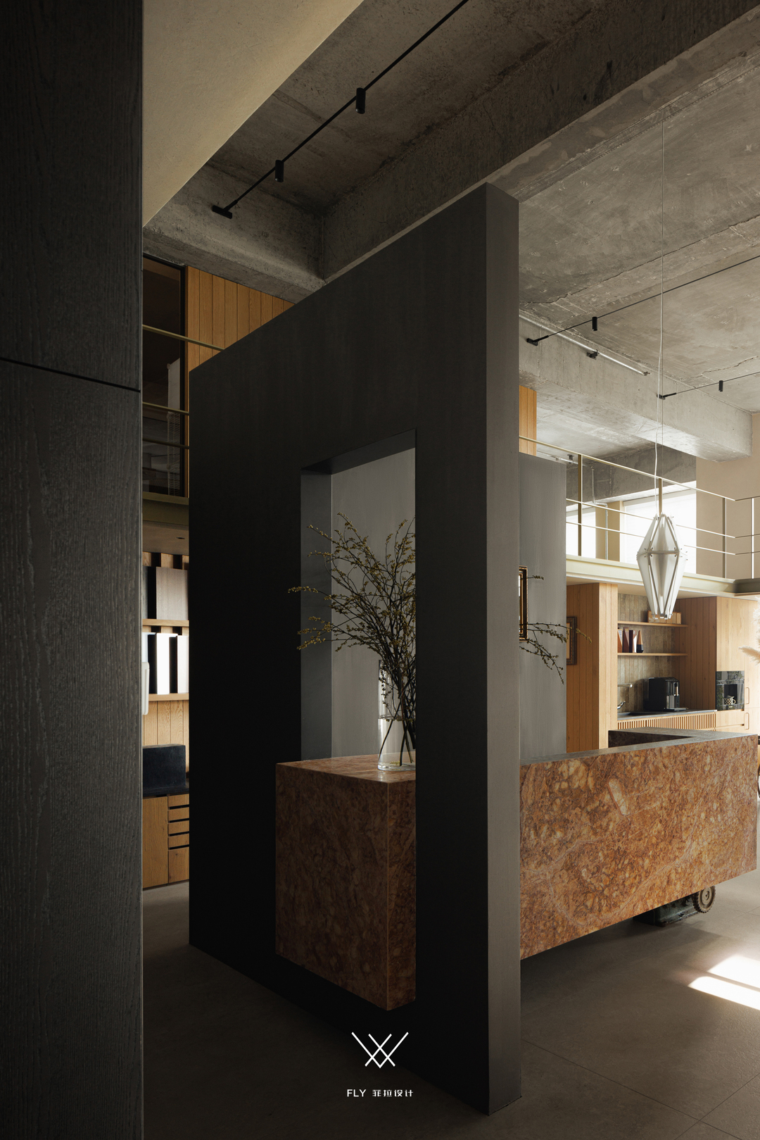 无论世事如何变迁,人追逐自然的渴望未曾减退,身在闹市,总向往着峰林之间的虫鸣鸟啼、树石水潺,一草一木都能唤醒内心的静与美。宋老师希望办公室就是具备这种属性的空间,让人感受到平和与自由,拉近身之所在与心之向往的距离。采集山石林木元素应用于室内,顶面铲掉白灰保留清水混凝土质感,空间散发着随性、原始、自然的气息,让内心寻得一份归属感。空间内自然的曲调悠扬,也有着人文的细吟。