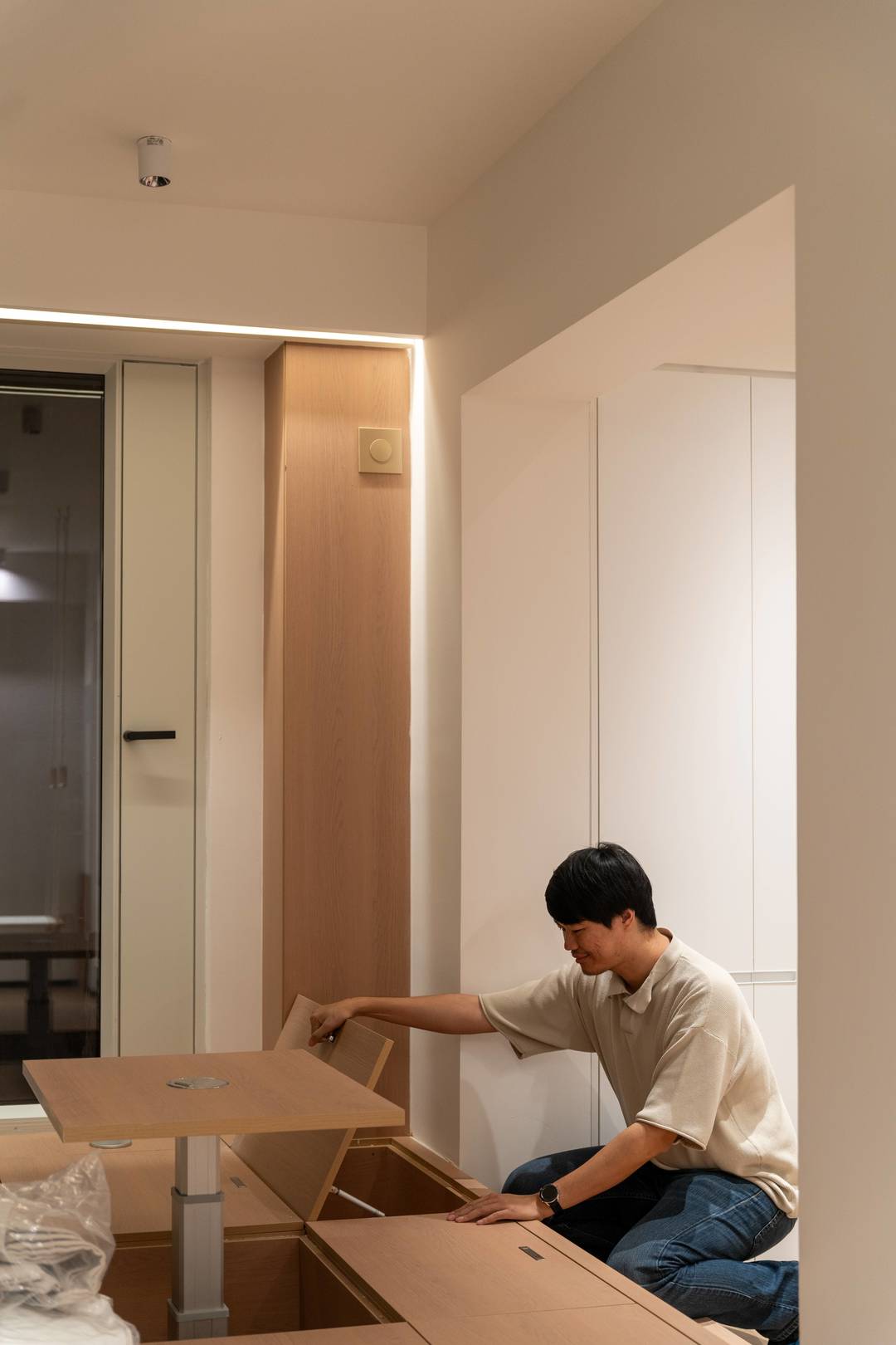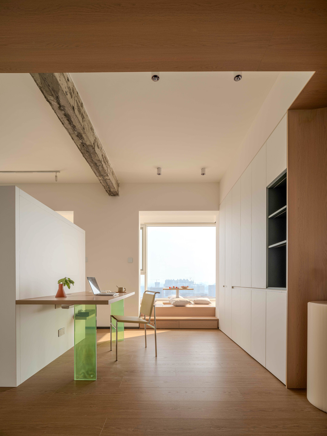 这里也有一个设计上的小细节,窗户生产之前刻意抬高部分窗框,这样做好的榻榻米就可以直接衔接窗框部分,避免卫生死角。