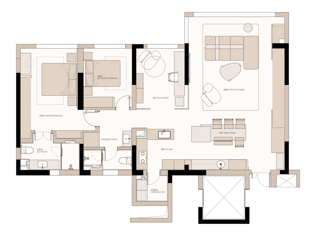 在整个空间中,我们始终探索着传统与创新之间的平衡。设计在满足功能需求之上,更从细节与材质入手,深入勾勒统一的空间风格,从而确保整体视觉的连贯性,使得不同区域之间过渡自然,毫无突兀之感。
