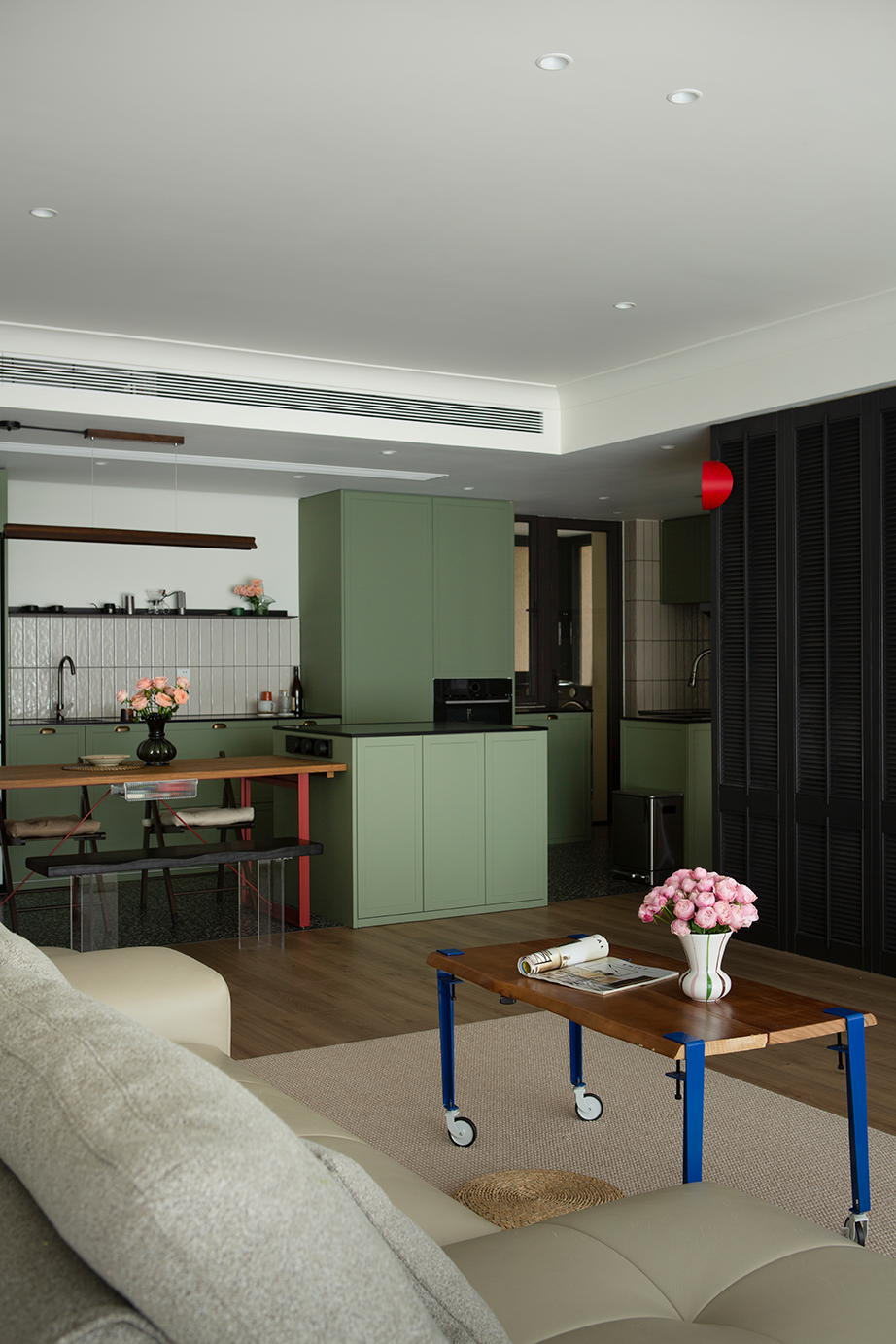开放的布局促进了互动与共处,复古的绿、温润的木与自然材质,为日常注入了轻松的仪式感,当生活超越了单纯的功能,升华为一种可被体验的美学,这种治愈力不言而喻。