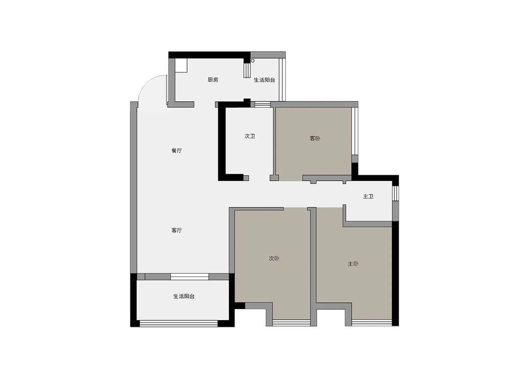 ● 次卫新增墙体,把卫生间改造为盥洗间和湿区,进行干湿分区,优化使用动线;