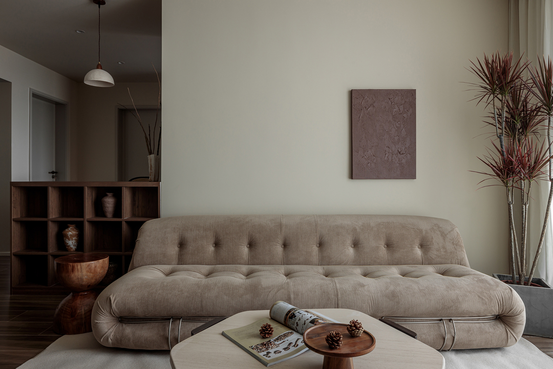 自然感的侘寂融合演绎的是淡泊、质朴的家居氛围,跳出潮流的选择适合自己、迎合内心的独处方式,看似孤独实则是在向内求。