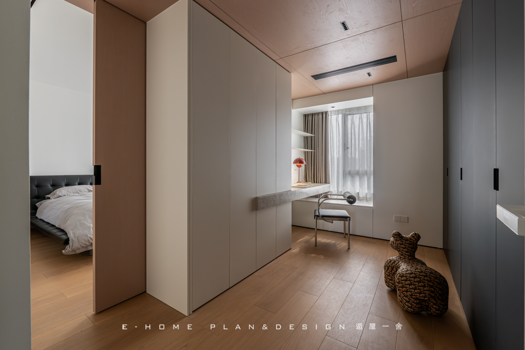 为了更安静的休息,卧室里那些非必要家具已经慢慢搬离,但是这样一来,储物系统会安置在哪里?衣帽柜除了沿墙行走,还能有更好的形式吗?