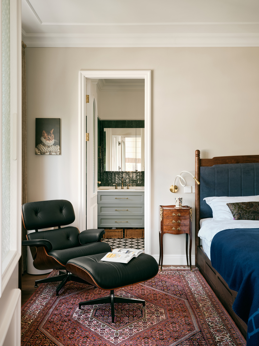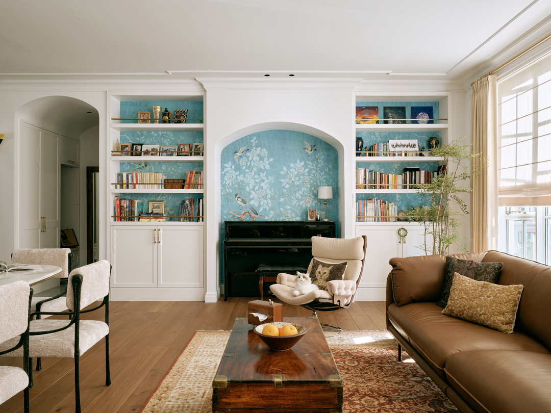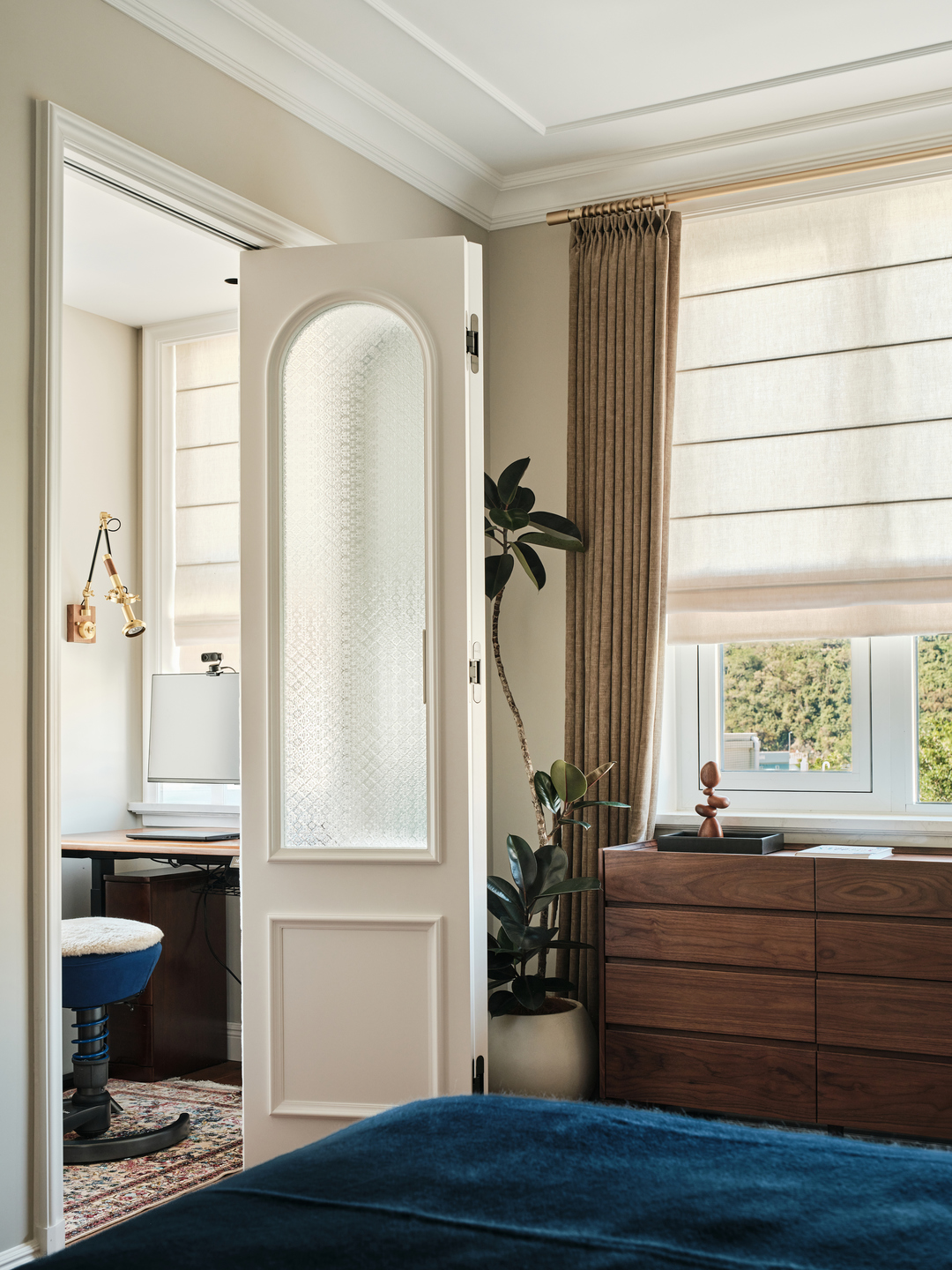五年前初遇时,业主一家即将结束在英国生活,带着故事和回忆的行囊回到上海。如今在香港半山老房里我们再次开始了新的合作,这一次的改造,我们看到了很多熟悉的影子。从英国居住时漂洋过海带回来的柚木箱,旅游时背回来的手工地毯,社恐的小猫咪,妻子的钢琴,小女儿的小提琴等等。 小猫从被窝里探出头时,我们突然意识到:所谓设计,不过是让时光里的物件在新空间里找到舒适的姿势。那些手工地毯,边缘已经磨出毛边,却刚好能铺满客厅中央;母女二人的温情画作,现在则成了过道的装饰模块,每一张都对应着一段迁徙记忆。