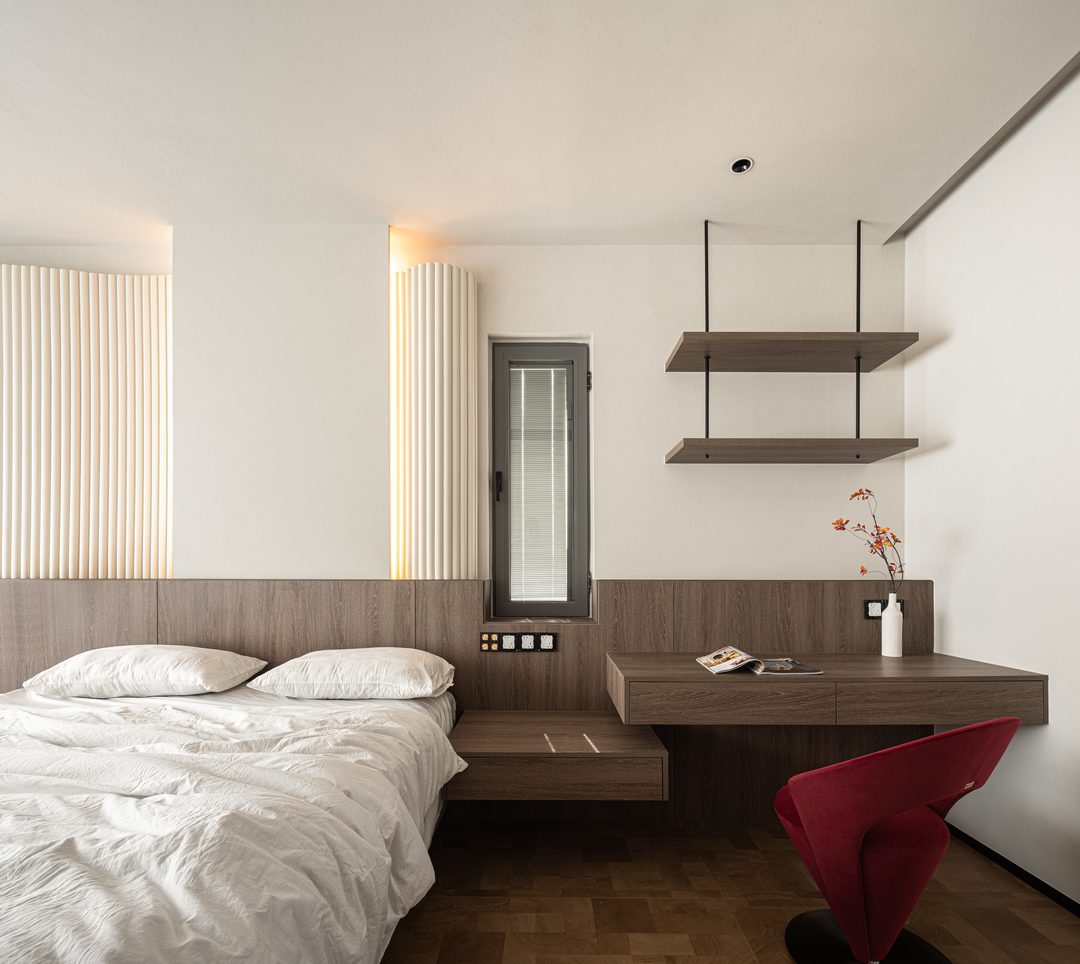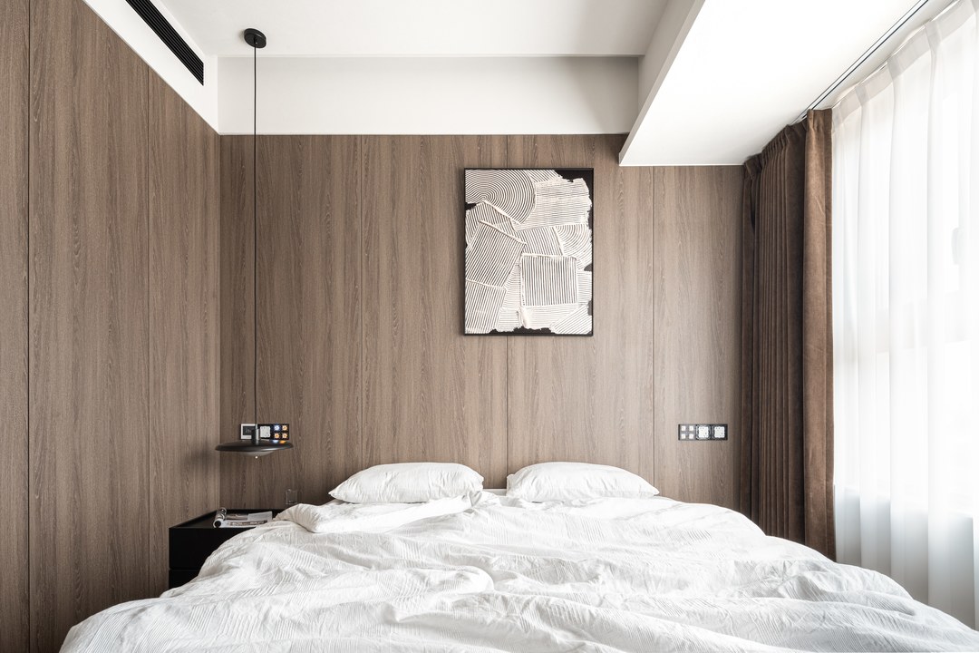 卧室空间,是意式简约对“生活本质” 的探索。线条与材质构建的容器,盛着晨起原木桌前的宁静、暮时壁炉旁的松弛。无主灯的光影层次,消弭了现代生活的浮躁,似文艺复兴对 “人” 的觉醒呼唤。