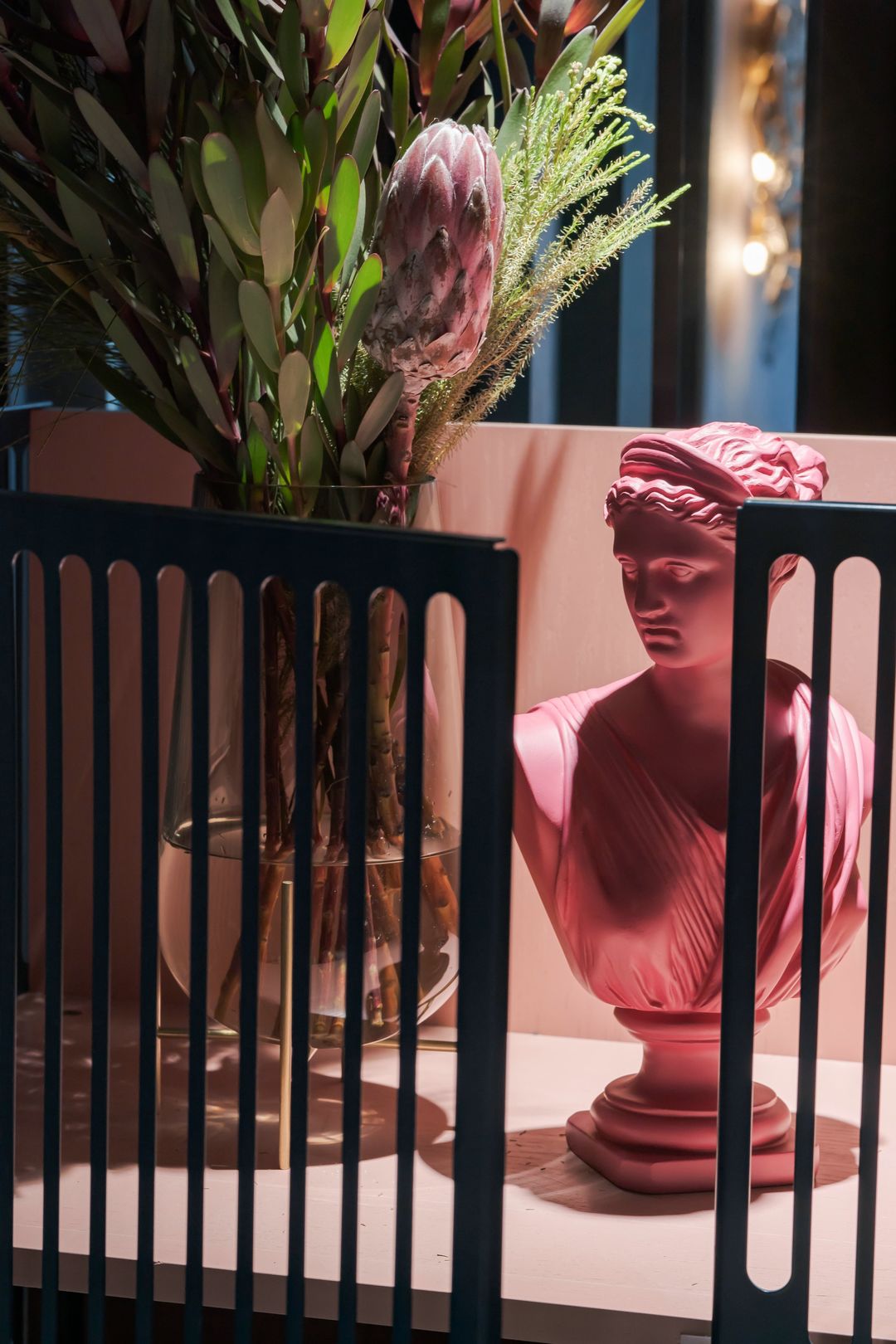 在这个空间里,墨绿、深蓝、高级灰;皮质、原木、丝绸和羊毛纺织,从颜色和材质上都很好地丰富了Art deco的内涵与形式。