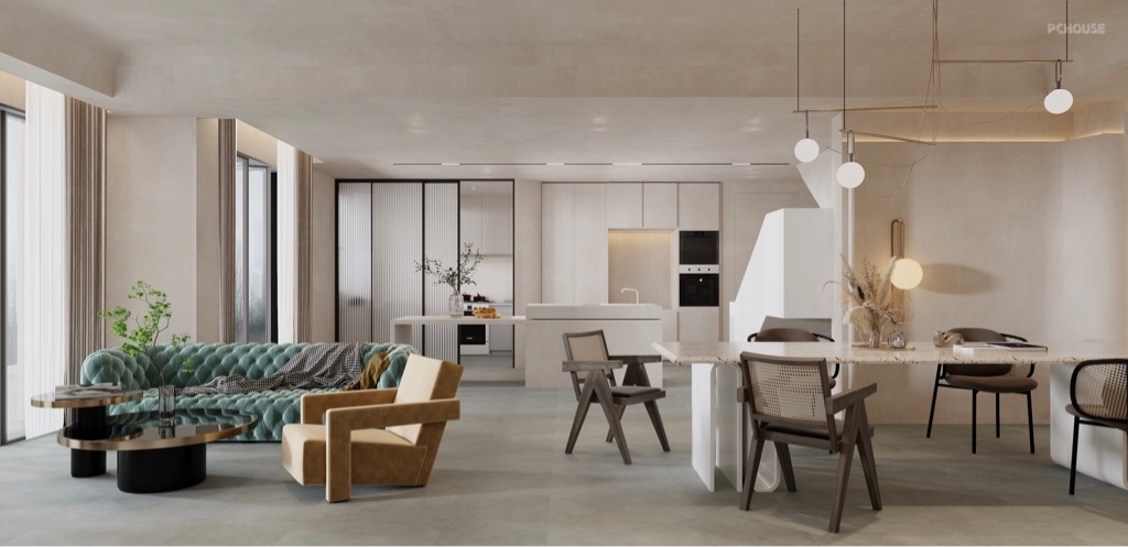 硬装部分用到了奶咖色微水泥效果即给人干净简约的感官也不会显得很冰冷