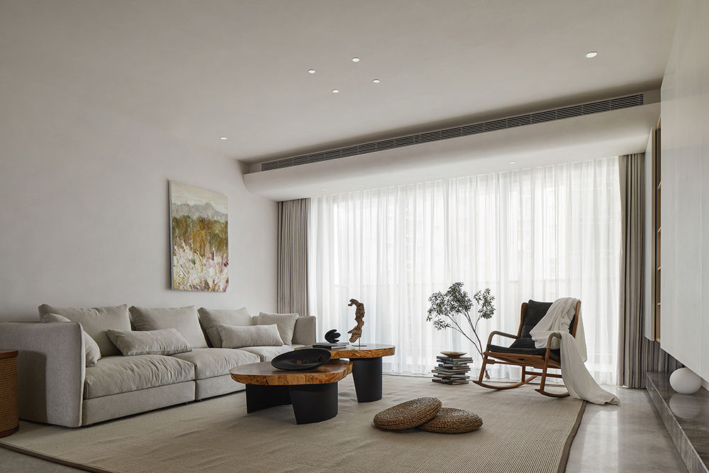 在阳光粤海,设计师郑鸿以质朴温暖的大地色系铺陈生机活力的空间意蕴。不多一分矫饰,在材质与部品的甄选上,以极简的手法保留最自然粗犷的肌理与触感,营造轻松自在的氛围,分享并呈现关于生活的“审美自信”。