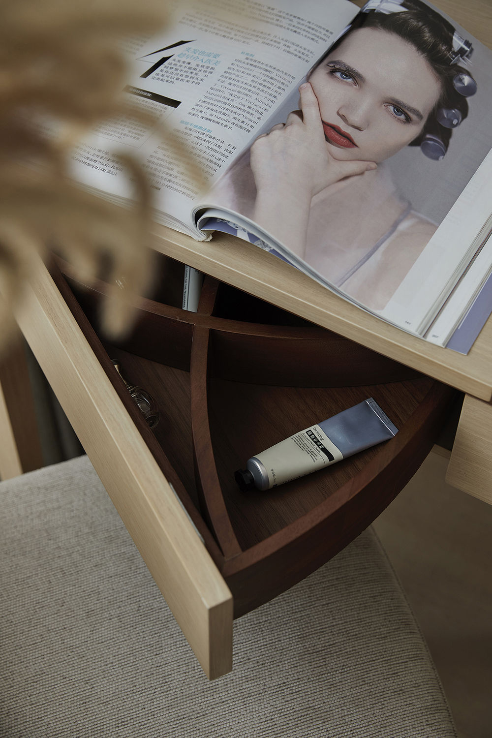 当空间满足了居者的个性化需求后,我们离真实且美的生活又近了一步。开放性多功能收纳柜将日常的小惊喜汇聚一起,一开一合间,书香四溢的读本和造型别致的藏品,各自释放着品调十足的韵味。