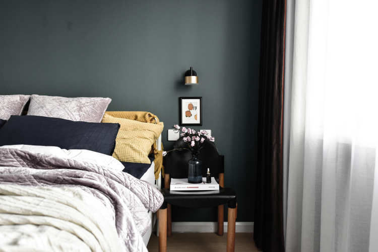 卧室选择了很喜欢的墨绿色,复古而高雅,还有助于安抚睡眠。