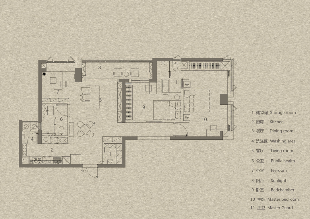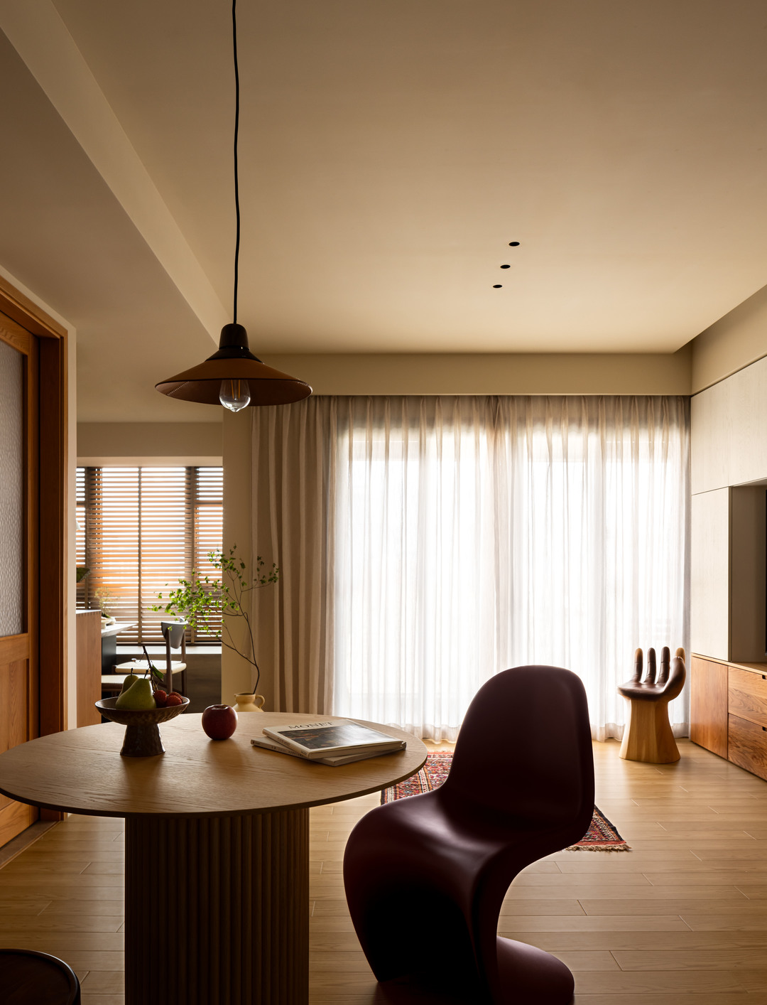 设计不以简单或复杂的装饰定位生活主题,期望透过最质朴简单的材质凝练空间的语言,探索东方现代主义感的家,用现代的口吻,转译内敛含蓄的美学表达。