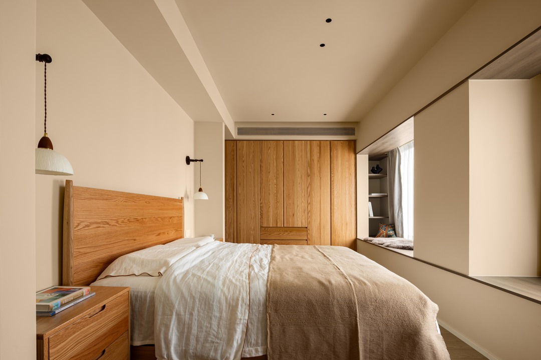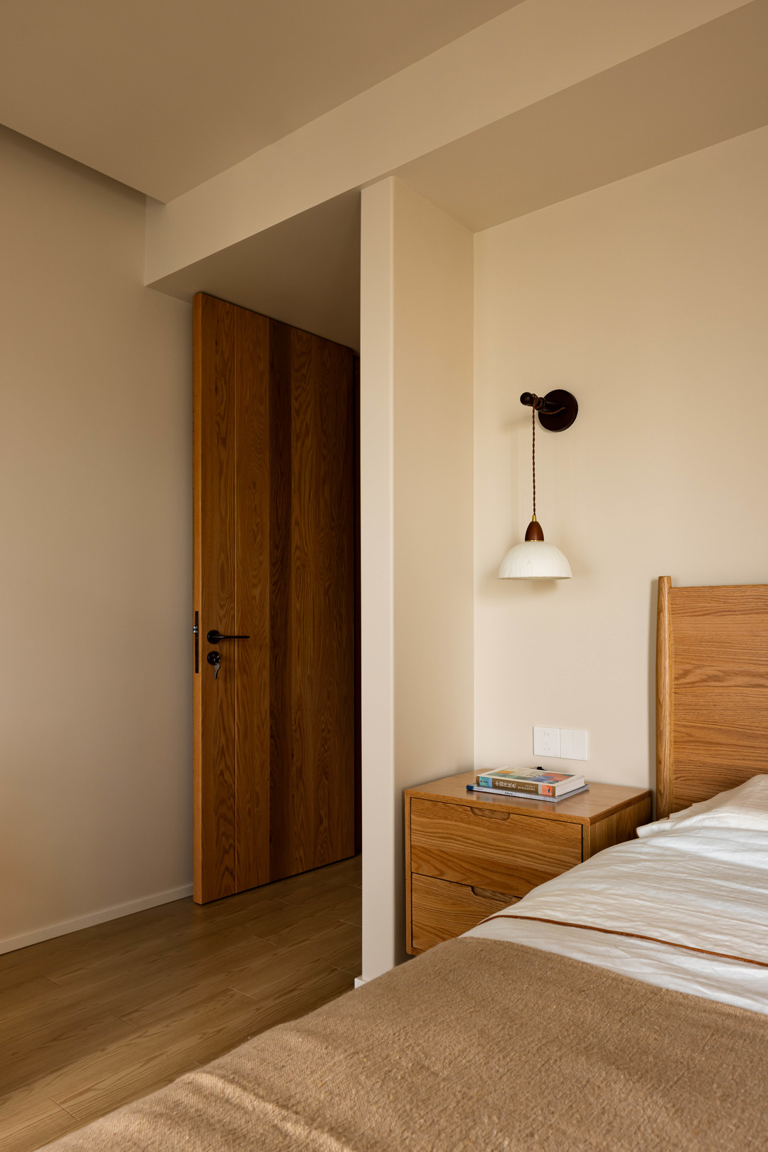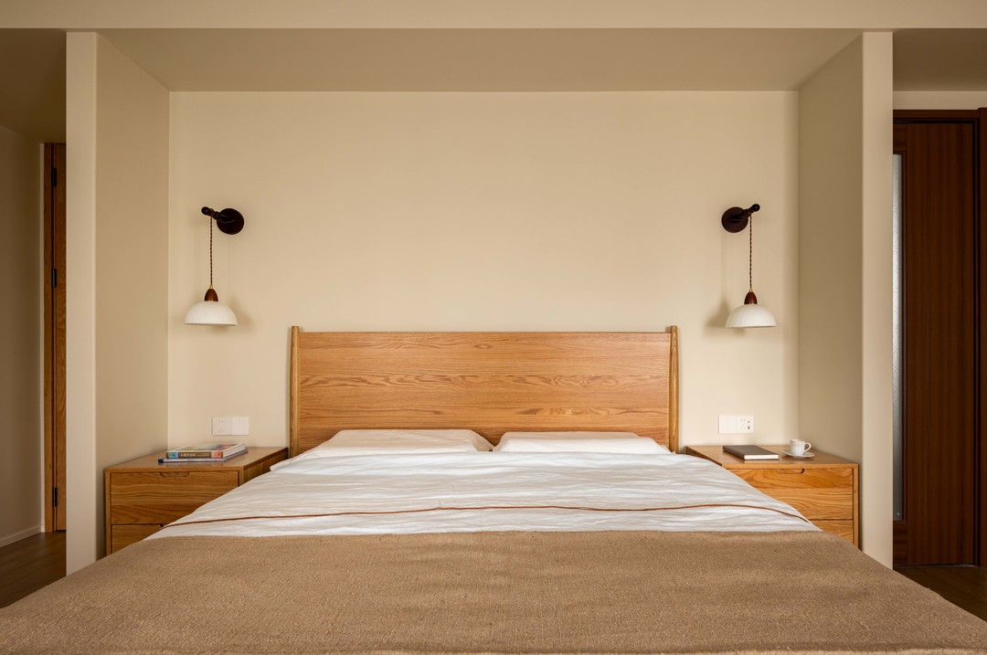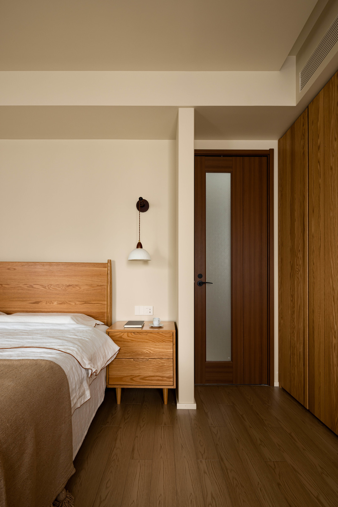 卧室内的细节更关注居住者精神、意识、感觉、身体等,木质渲染的安定气息、柔和细腻的肌理、开阔的视觉,共同达到凝神静心的效果。