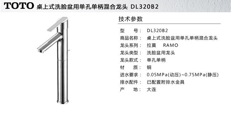 桌上式洗脸盆用单孔单柄混合龙头 DL320B2