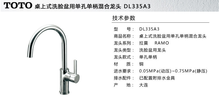 洗脸盆用单孔单柄混合龙头 DL335A3