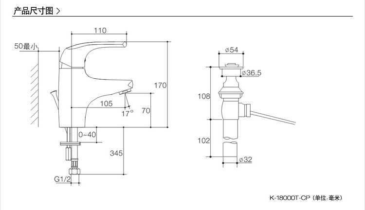 纳帝奥脸盆龙头 K-18000T-CP