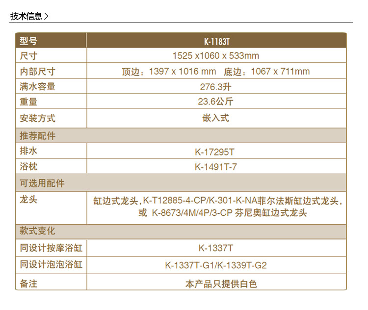 史瑞夫压克力浴缸 K-1183T-0