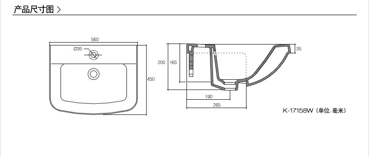 帕纳奇半嵌入式脸盆 K-17158W-00
