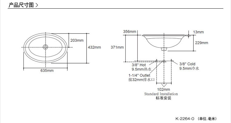 苔丝台上脸盆 K-2264T-0