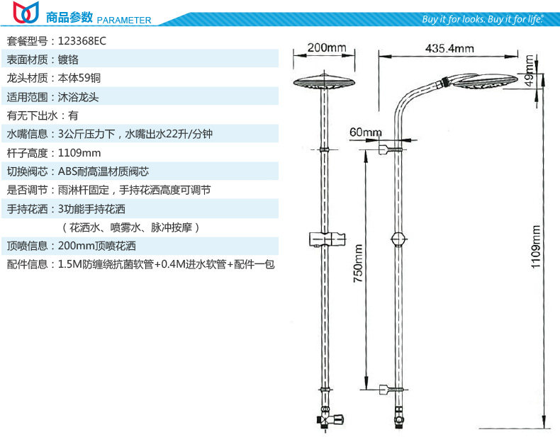 全铜沐淋浴花洒套装123368EC