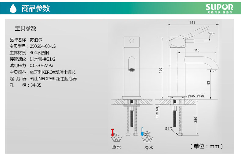 苏泊尔不锈钢面盆龙头250604-03-LS