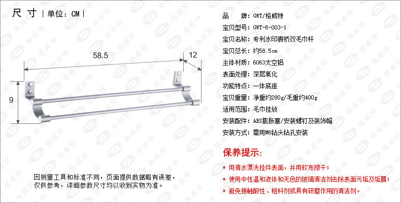 毛巾杆长度: