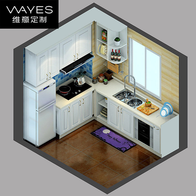 维意整体橱柜l型石英石台面橱柜定做