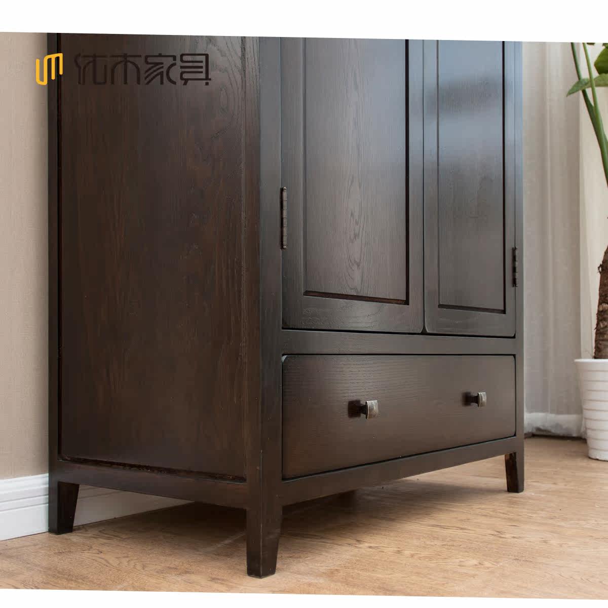 优木纯实木两门衣柜美式经典红橡木两门衣柜
