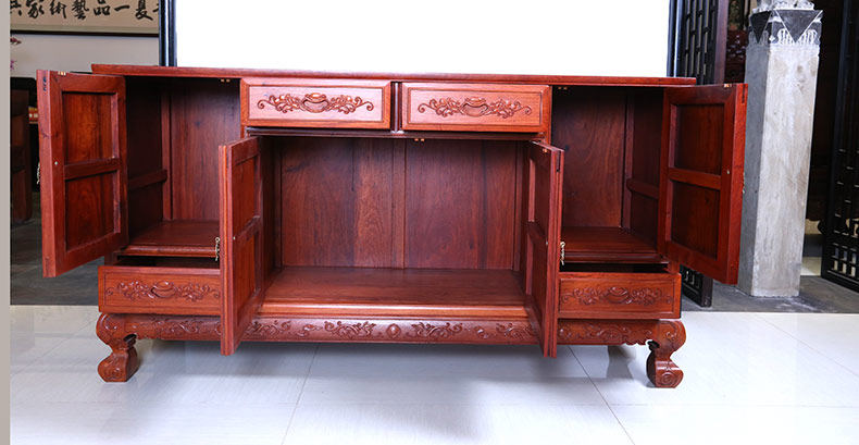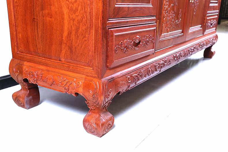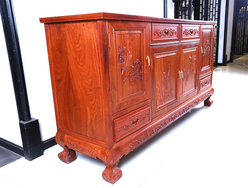 逸馨红木缅甸花梨木檀雕花鸟餐边柜 c100