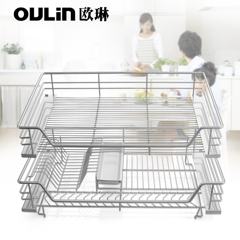 欧琳橱柜拉篮双层抽屉式碗碟架碗篮调味拉阻尼滚珠