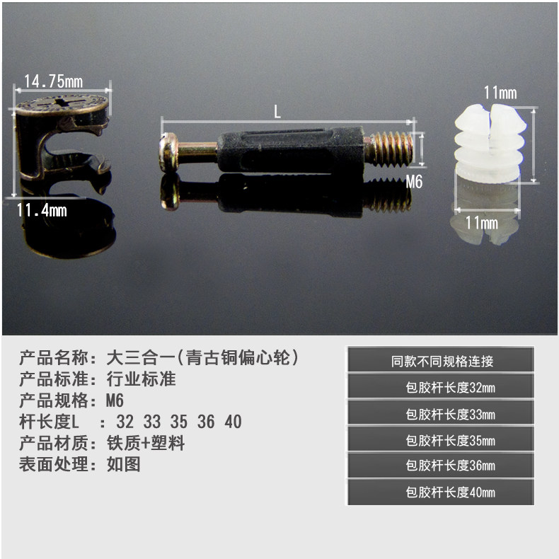 斯勃锐五金家具连接件三合一古铜连接杆32mm