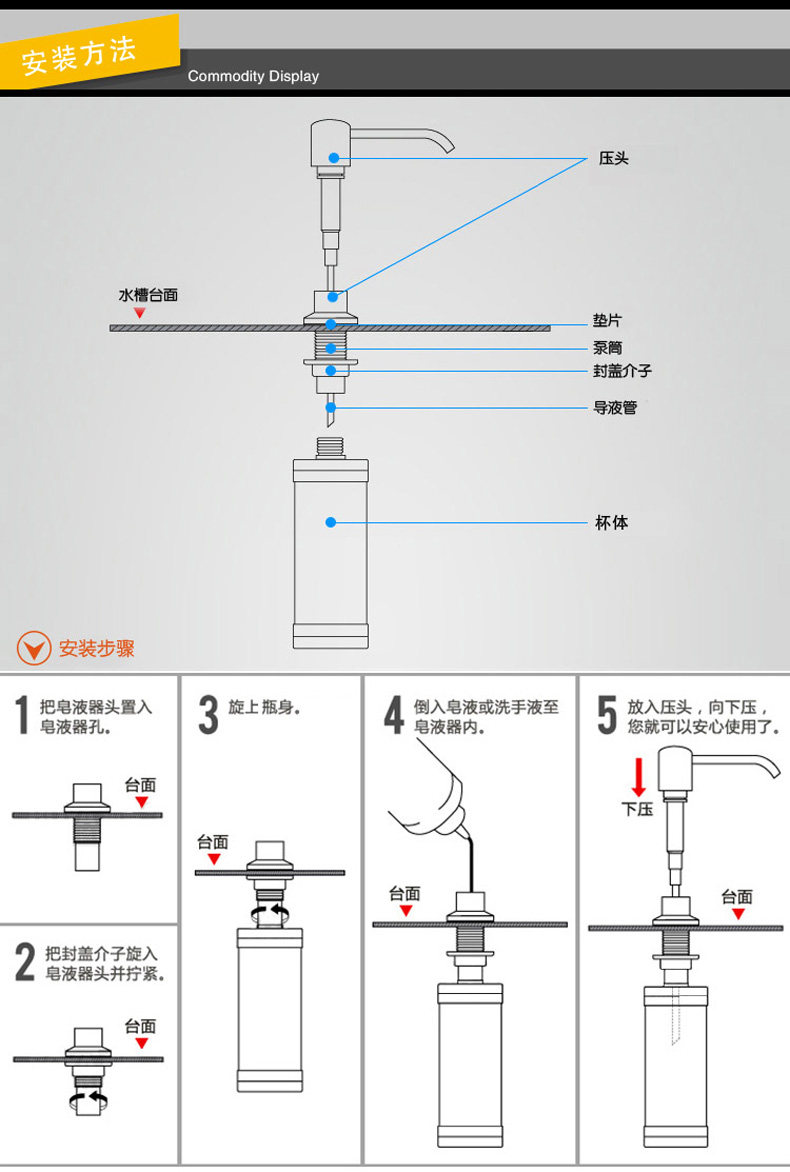 吉斯特水槽用皂液器大容量300ml洗菜盆