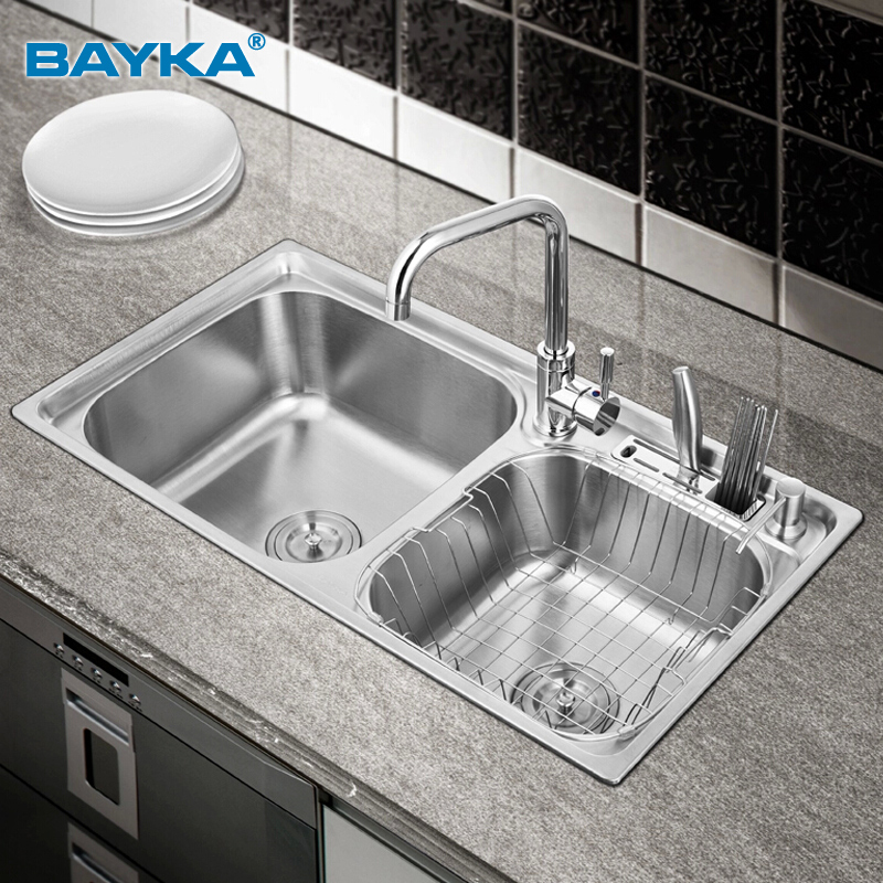 贝凯304不锈钢拉丝水槽BK厨房水槽双槽