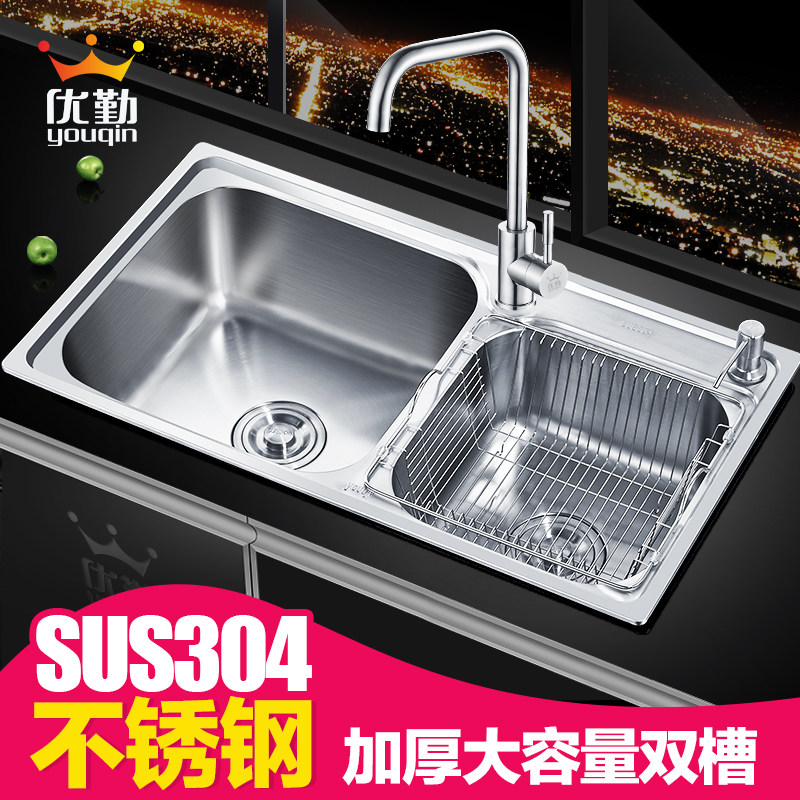 鹰卫浴高级不锈钢双槽洗菜盆KS-3011.2
