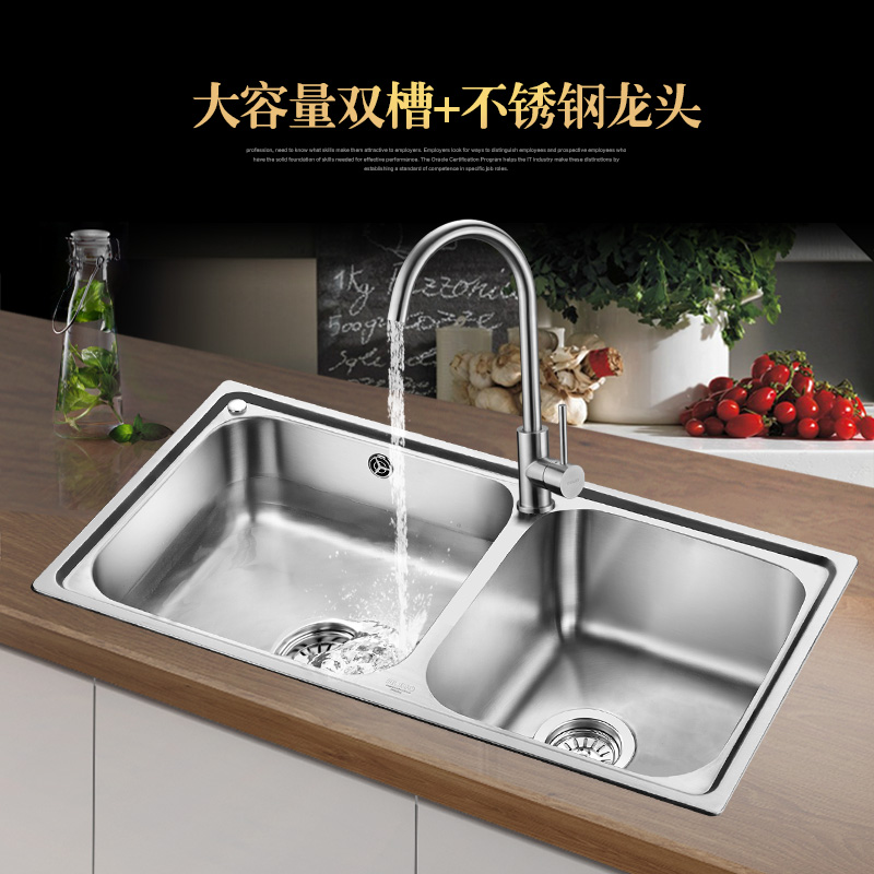 鹰卫浴高级不锈钢双槽洗菜盆KS-3011.2
