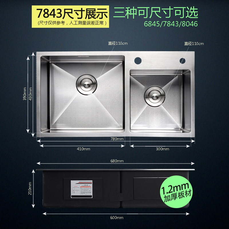 鹰卫浴高级不锈钢双槽洗菜盆KS-3011.2