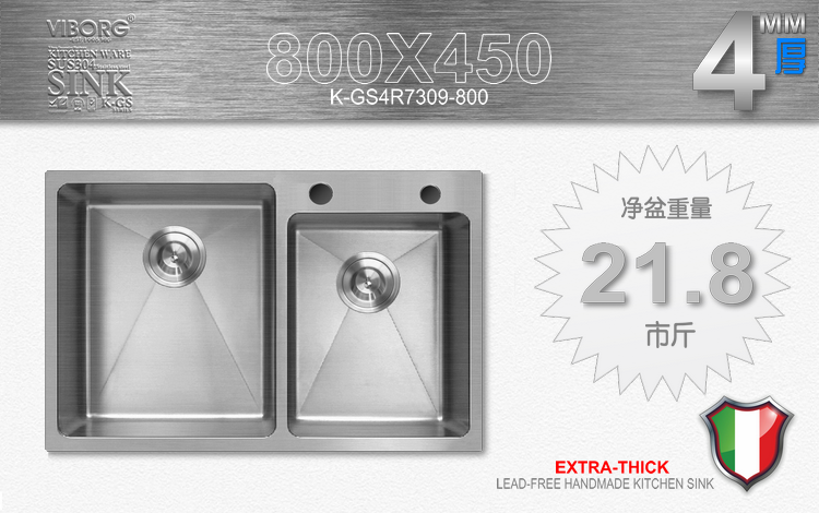 鹰卫浴高级不锈钢双槽洗菜盆KS-3011.2