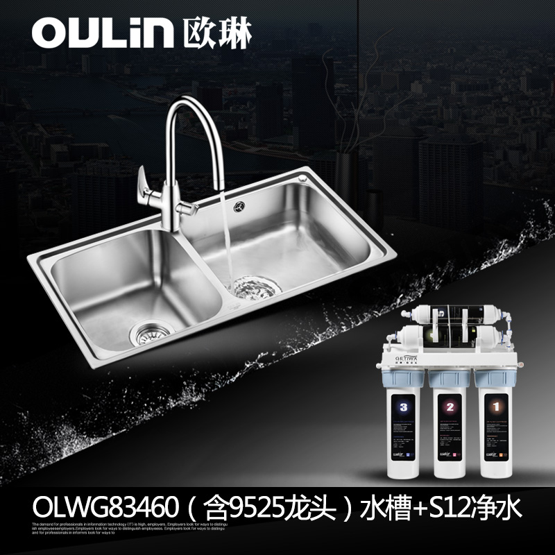 欧琳水槽双槽洗菜盆OLWG83460+OUF-S12