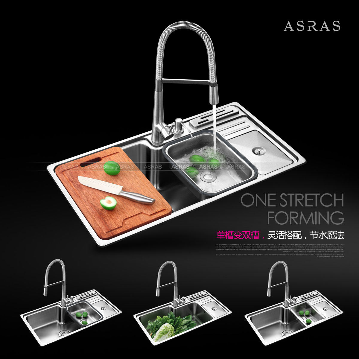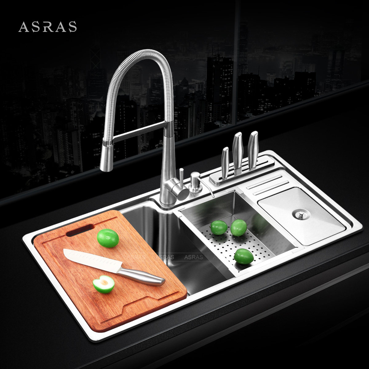 asras304不锈钢水槽装单槽AS8445