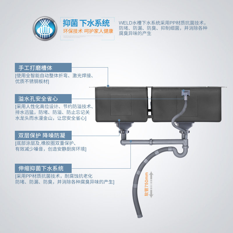 威尔登手工水槽双槽608